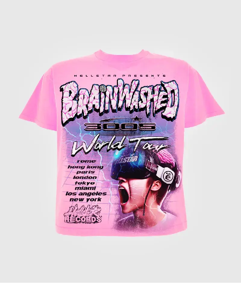 Embrace the message, embrace the style. The Hellstar Brainwashed World Tour T-Shirt is more than just fashion; it’s a statement.